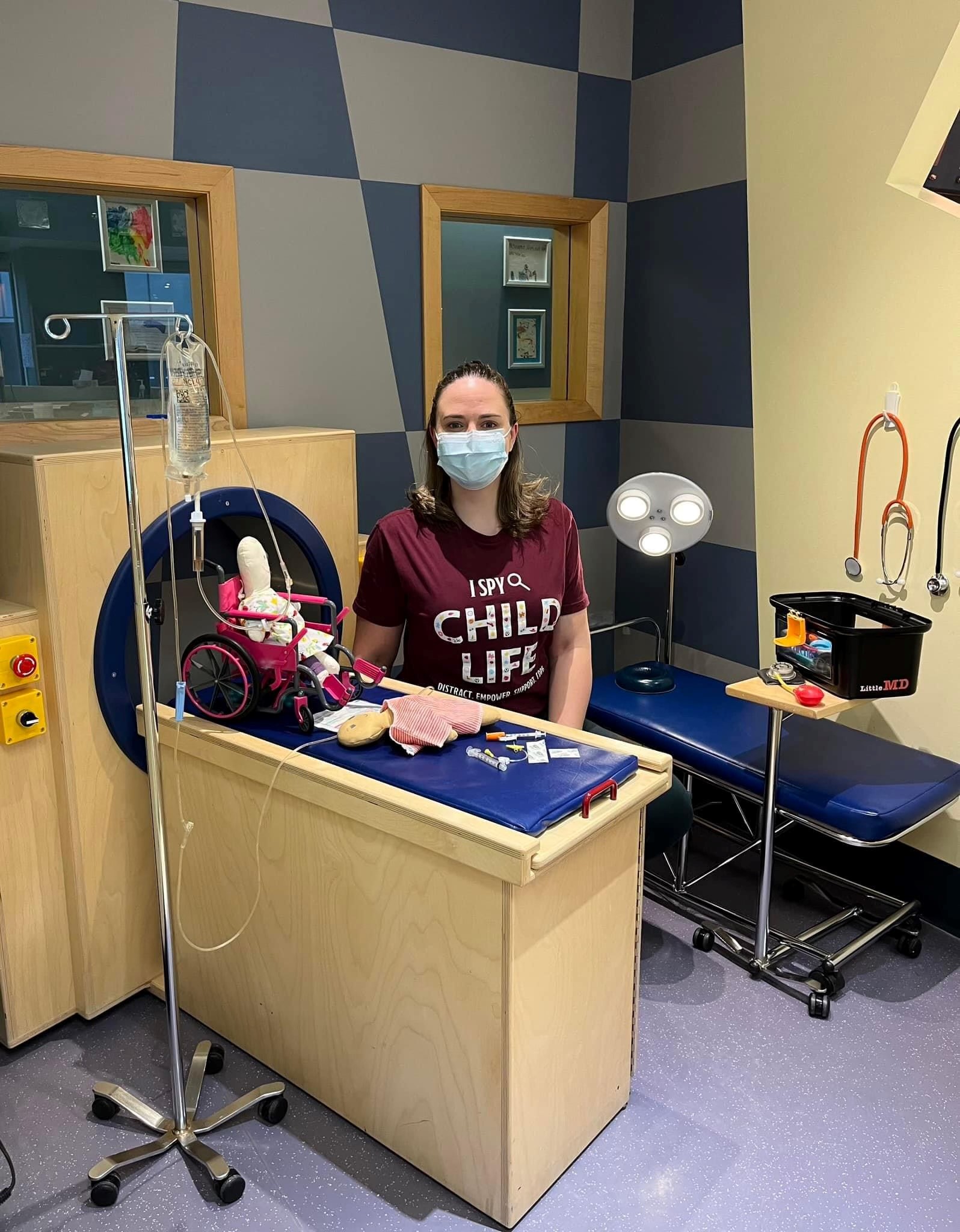 “I’ve mostly worked in the Main Playroom with inpatients who are able to leave their units and participate. We typically see 10 to 12 patients each day, which ebbs and flows depending on the needs of the hospital. The mornings are for children up to age five, providing developmental play and support, then in the afternoons, we have patients from ages six to 17, which provides peer interaction and socialization.”