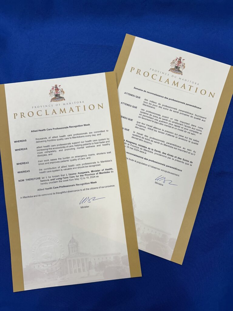 On behalf of more than 7,000 MAHCP members, thank you to Honourable Uzoma Asagwara, Minister of Health, Seniors & Long-term Care, for welcoming our President Jason Linklater and MAHCP Executive Council into the Chamber today, May 15, in honour of 2024 Allied Health Week.